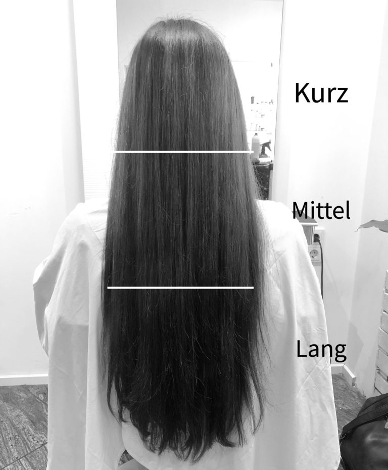 Eine Orientierung bezüglich der Haarlänge findet Ihr ganz unten auf der Seite in einer Illustration.